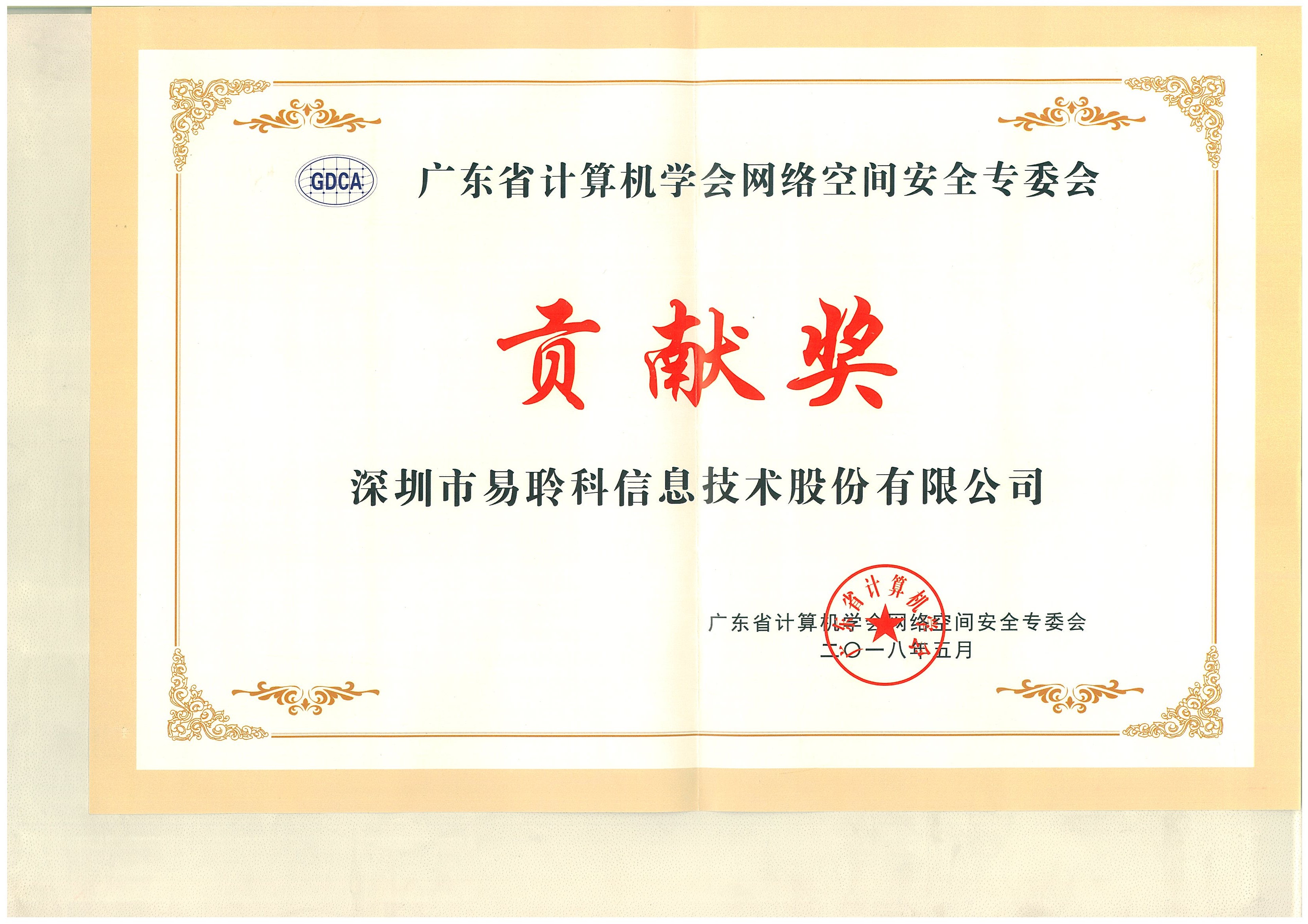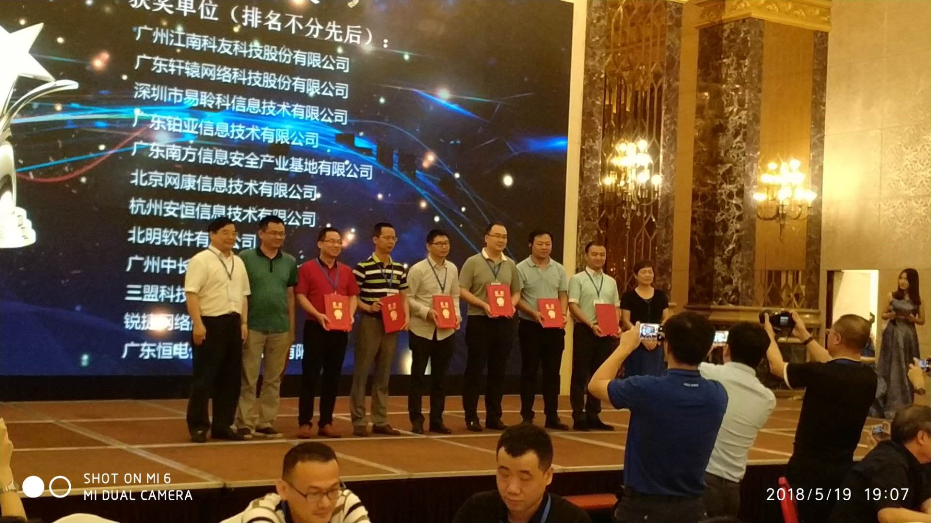广东网络空间安全学术年会暨通信安全技术研讨会于5月19日在清远顺利举行。中国工程院院士孙玉教授,长江学者特聘教授、国家杰青、广工大马建国教授,广东省通信管理局原副巡视员林鹏教授,中国科学院信息工程研究所谭建龙研究员等专家学者分别做大会特邀报告。会议注册代表366人来自国内60所高校、53家IT企业和省内12个政府相关管理部门。易聆科信息技术股份有限公司作为会员单位参与了本次研讨会,在网络空间安全技术分论坛做了“网络安全态势感知建设思路的分享”主题演讲,并获得了大会颁发的贡献奖。