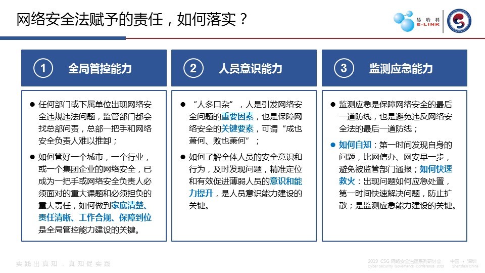 2019年2月28日,易聆科信息技术股份有限公司在深圳市成功举办CSG论坛“安全关键能力—网络安全法和责任落实的核心”主题研讨会。