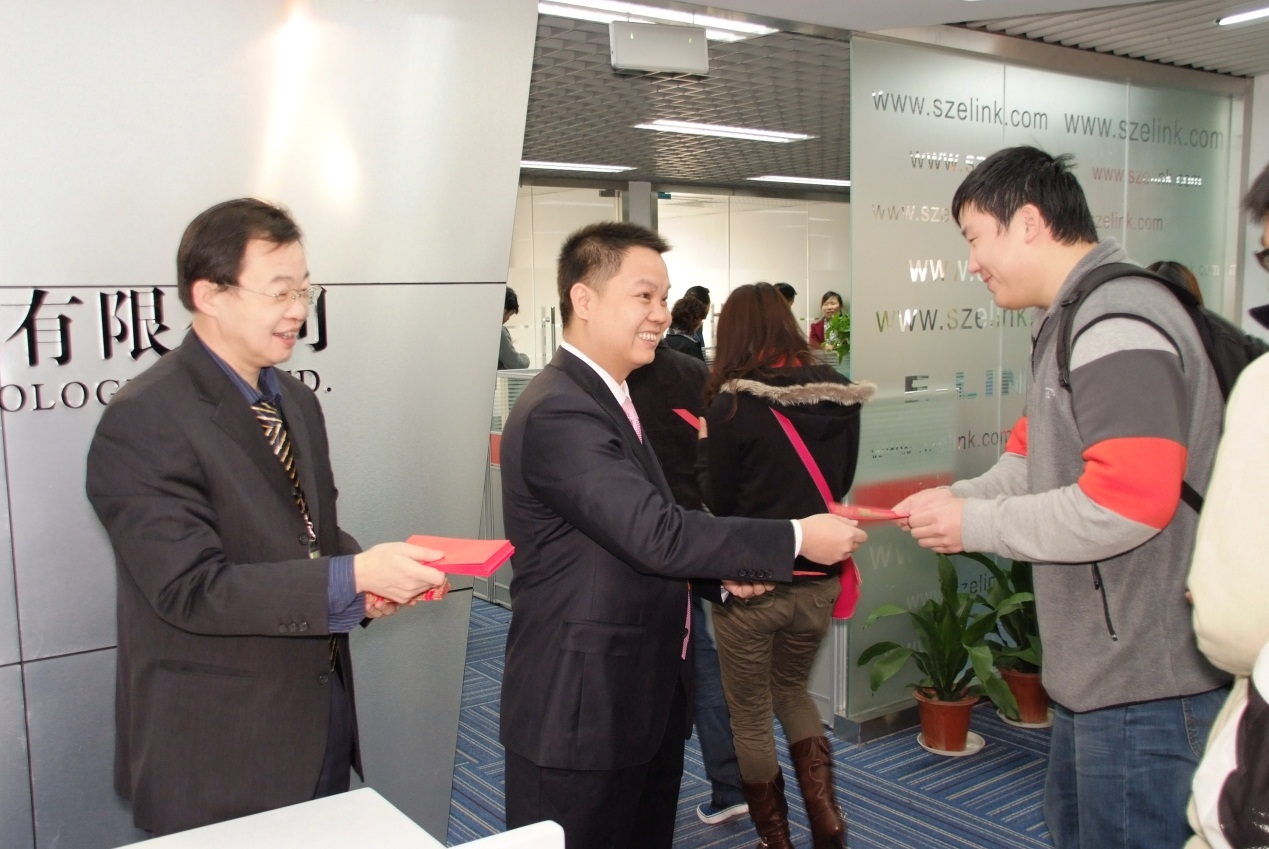 总经理彭建中给到场员工发开门利是