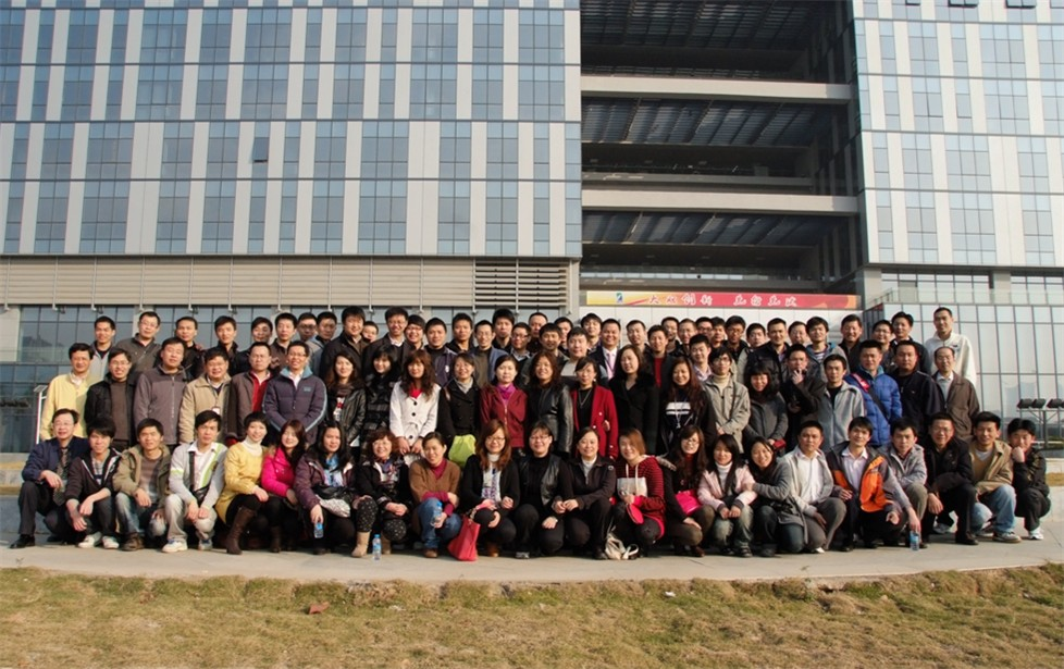 全体员工在软件大厦前合影