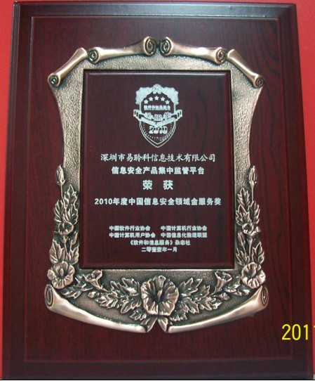 本次有500余家国内外软件和信息服务领域解决方案厂商历经3个月的激烈角逐和层层遴选,最终仅59家来自基础软件领域、管理软件领域、IT运维领域、电子商务领域、存储软领域、网络安全领域以及平台服务领域等十余个重要领域的优秀厂商脱颖而出捧得金杯。易聆科自主研发的“信息安全产品集中监管平台”一举双中,分别获得“2010年度中国金软件“和2010年度金服务”两个奖项。
