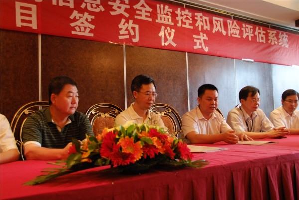 2010年8月23日,对于深圳市易聆科信息技术有限公司(以下简称 8月23日,对于深圳市易聆科信息技术有限公司(以下简称:易聆科)来说,是一个特殊而有重大意义的一天,易聆科在深航国际大酒店隆重举行《深圳市电子政务外网信息安全监控和风险评估系统》项目签约仪式,这是易聆科开拓政府行业信息安全市场以来,首个单项金额超千万的市政项目。当天到场的领导有深圳市信息安全测评中心武刚主任、赵国庆副主任及其他相关专家和领导,易聆科出席的代表有彭建中总经理、池小宁总工程师、熊甲林副总经理等其他相关人员。借此机会,向关心、支持本项目发展的各方人员表示诚挚的谢意。