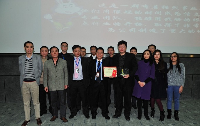 会议最后一项,对2012年表现优异的员工和团队进行表彰。广州分公司通过一年的辛勤耕耘,突破了电力行业,荣获了2012年杰出团队奖;马忠海和方涛以骄人的业绩和利润贡献率荣获市场先锋奖;黄鹏程和袁衣良以精湛的专业技术和卓越的客户服务意识荣获年度专业技术奖;王平因在公司2012年策略调整中的突出贡献荣获年度优秀干部奖;范礼正和马志国两位新员工因试用期的优异表现,荣获优秀新人奖。