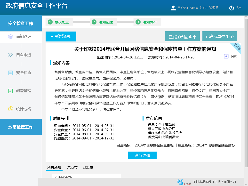 易安政府信息安全检查工作平台发布