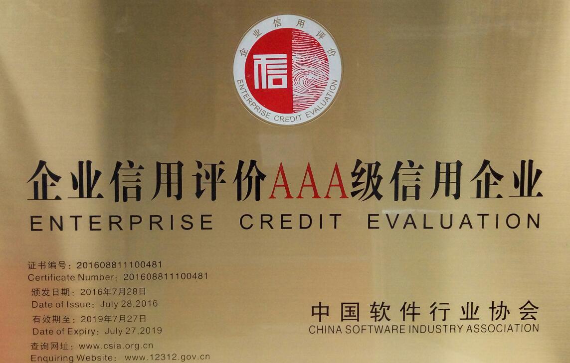2016年7月28日,易聆科被中国软件行业协会评选为2016年度“企业信用评价AAA级信用企业”,并颁发了铜牌证书。
