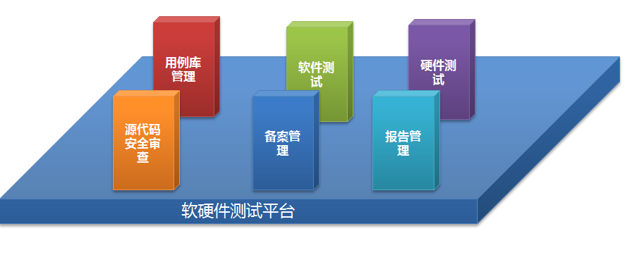 软硬件一体化测试平台,主要包括硬件测试、软件测试、用例库管理、源代码安全审查、软件备案等功能。具体如下图所示: