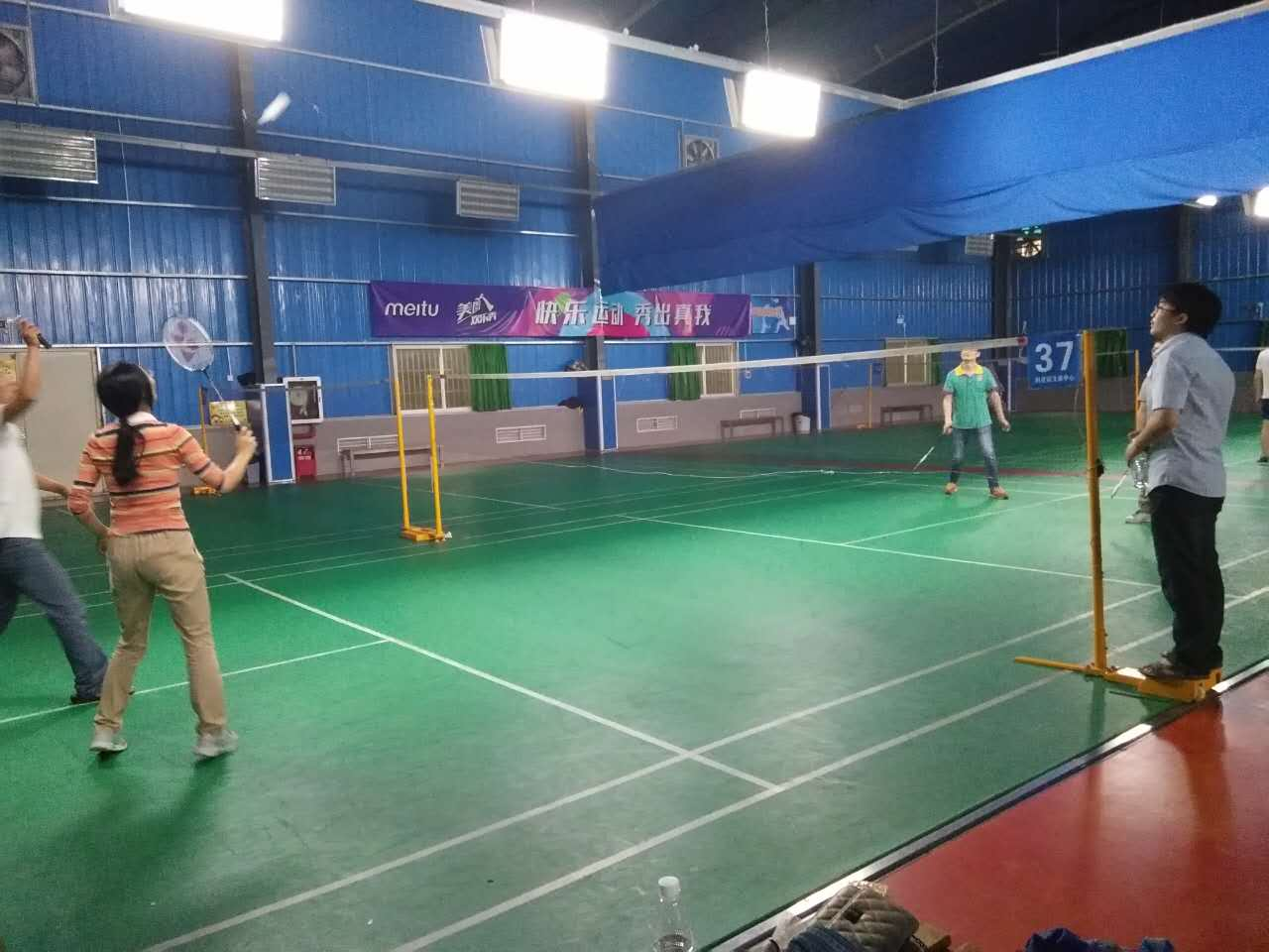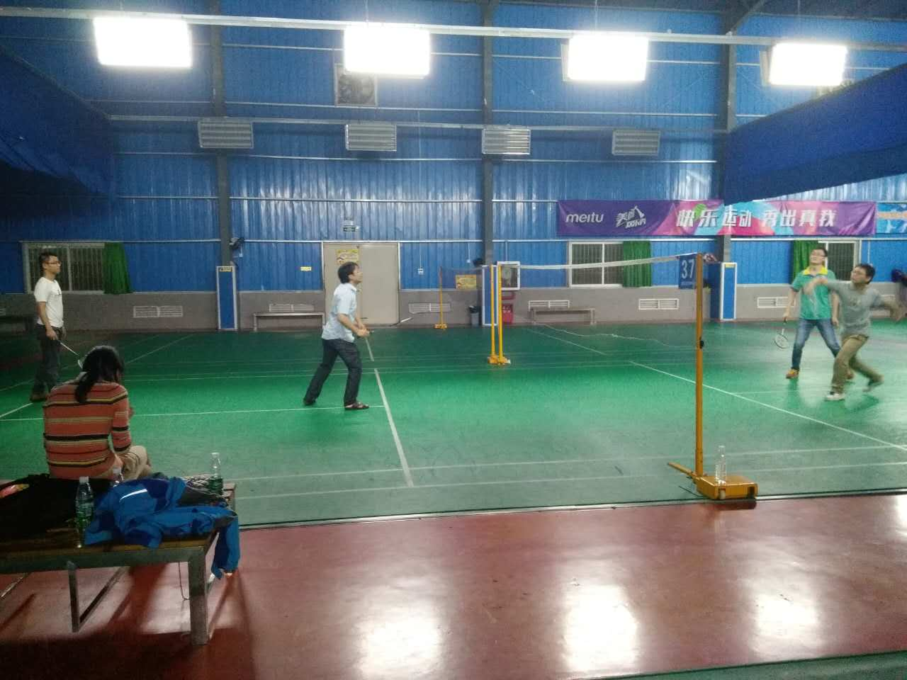 时间一分一秒过去,球场内气氛热烈,暴雨打在球场的隔热瓦上,像是声声的战鼓将比赛的气氛推向了高潮,一拍拍有力的扣杀,一次次惊险的挑球,真看不出平时安安静静写代码的同事们,一个个还真是球场高手呐!