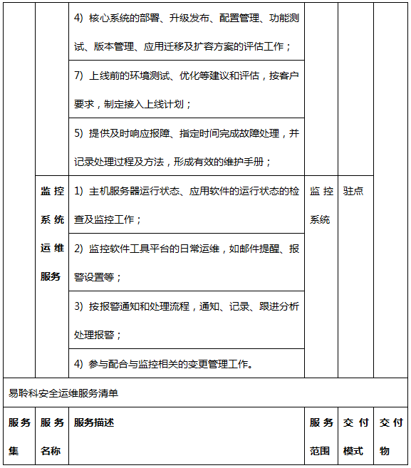 易聆科基于行业标杆ITIL、中国IT服务标准ITSS、国际信息安全标准ISO27001和中国信息系统安全等级保护标准,结合自身多年服务于国内政府部门,本土大、中型企业等的经验以及对于客户需求深入的理解,设计出易聆科安全及运维服务方法论、能力体系以及7*24集中式监控服务中心,为政府部门,如深圳市电子政务中心、深圳市中级人民法院等,以及为行业龙头企业,如万科集团、中集集团、港中旅集团等,提供全面、深入的信息化安全及运维服务。